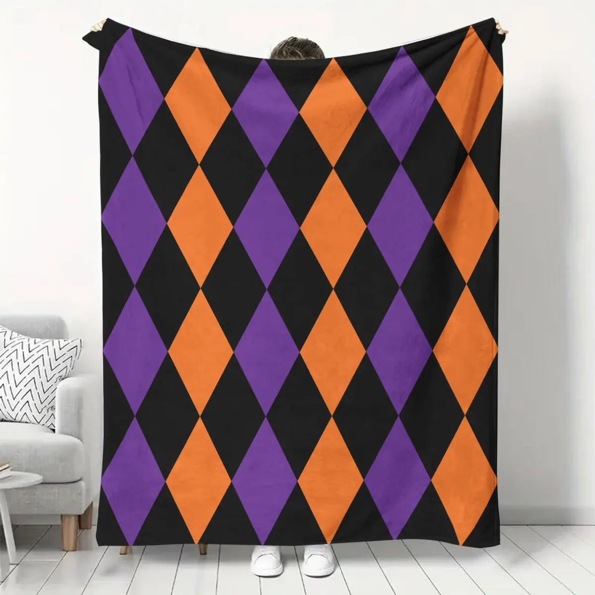 1pc Plaid Flannel Blanket - Soft Thick Warm Non-Shedding Black/Orange/Purple/White Bedspread, All-Season Heavy-Duty Bedding for $11.75