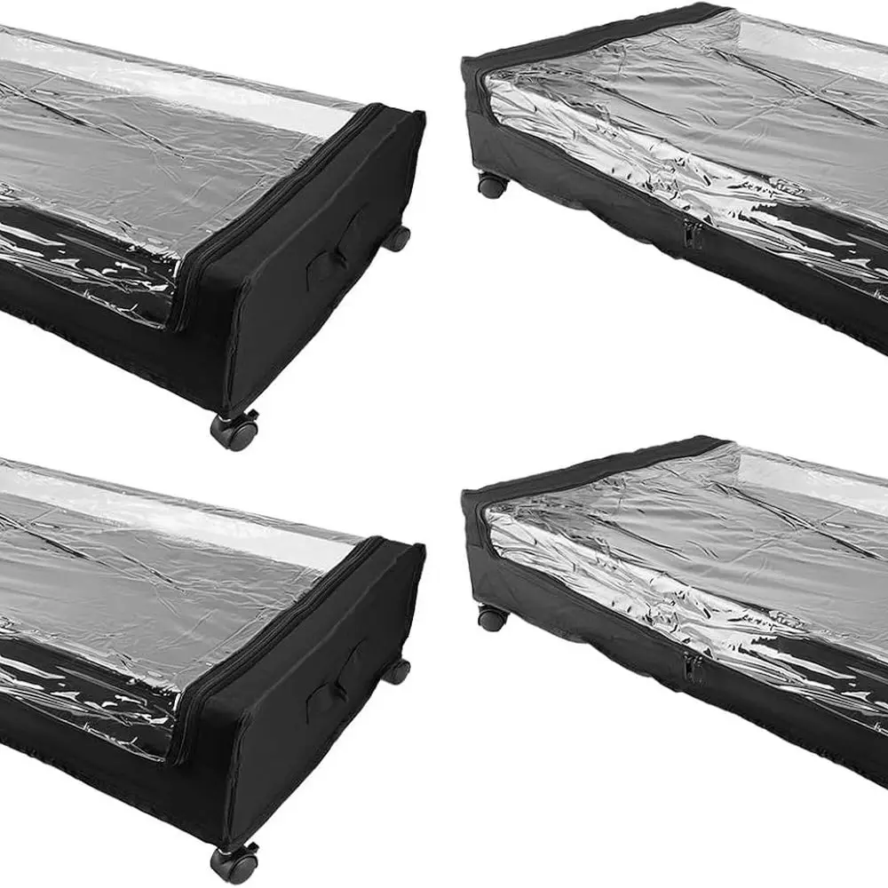 Under Bed Storage Container Set, 80x43.5x16cm Clear Top & Double Zip, 4-Piece Wheeled Drawers for Shoes, Clothes, Bedding $371.30