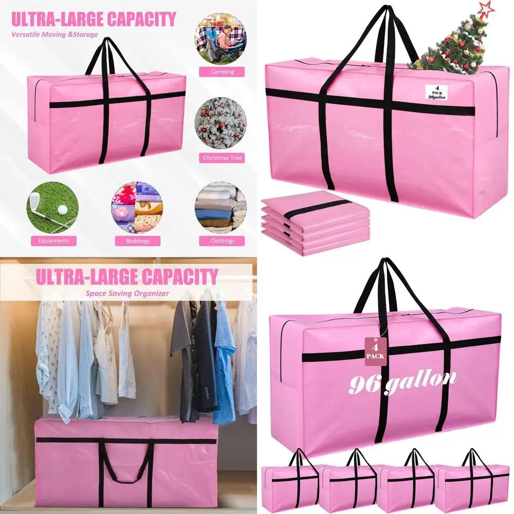 Extra Large 96 Gallon Moving Bags with Zipper, Handles, and Foldable Storage for Dorm, Travel, Clothes, and Bedding (Pink) $57.77