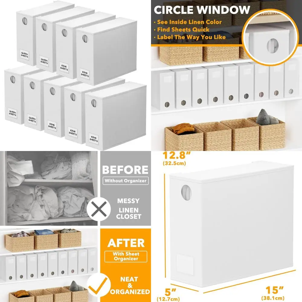 Foldable Bed Sheet Organizer with Window for Linen Storage, Suitable for Queen & King Size Bedding (White) $64.17
