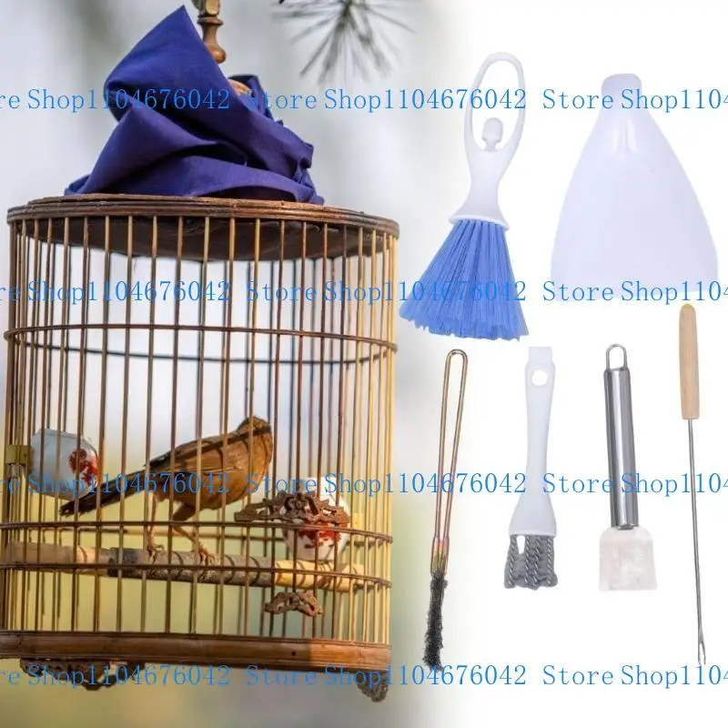 5asd 5Pcs Birdcage Cleaning Accessories Set Stainless Steel Tool and Brush for Pet Cage Hygienes Bird Cage Cleaner Set $2.55