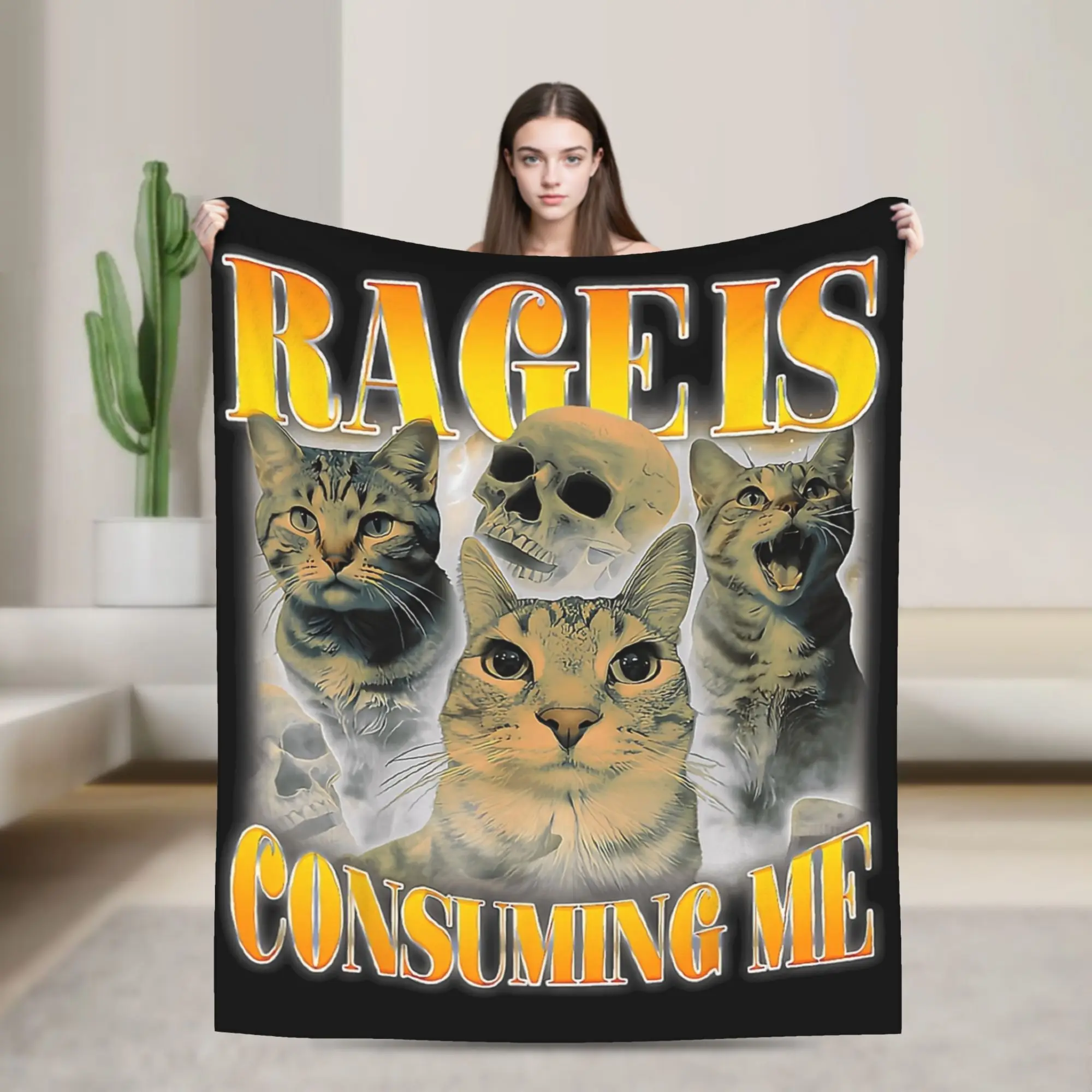 Rage Is Consuming Me Cat Meme Blanket Flannel Autumn/Winter Ultra-Soft Throw Blanket for Bedding Bedroom Plush Thin Quilt $12.62