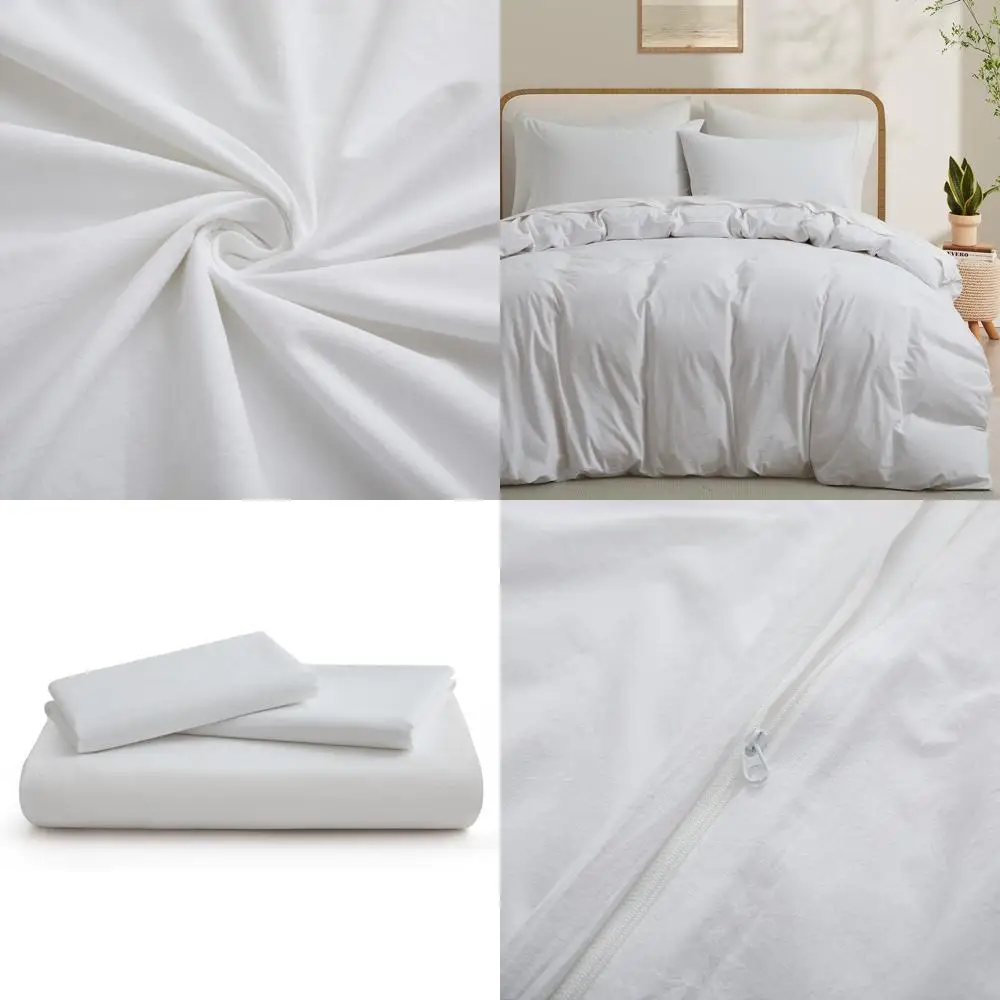 100% Washed Cotton Duvet Cover Queen Size, White Linen Like Breathable Natural Bedding Set (No Comorter), 90x90 Inches $37.75