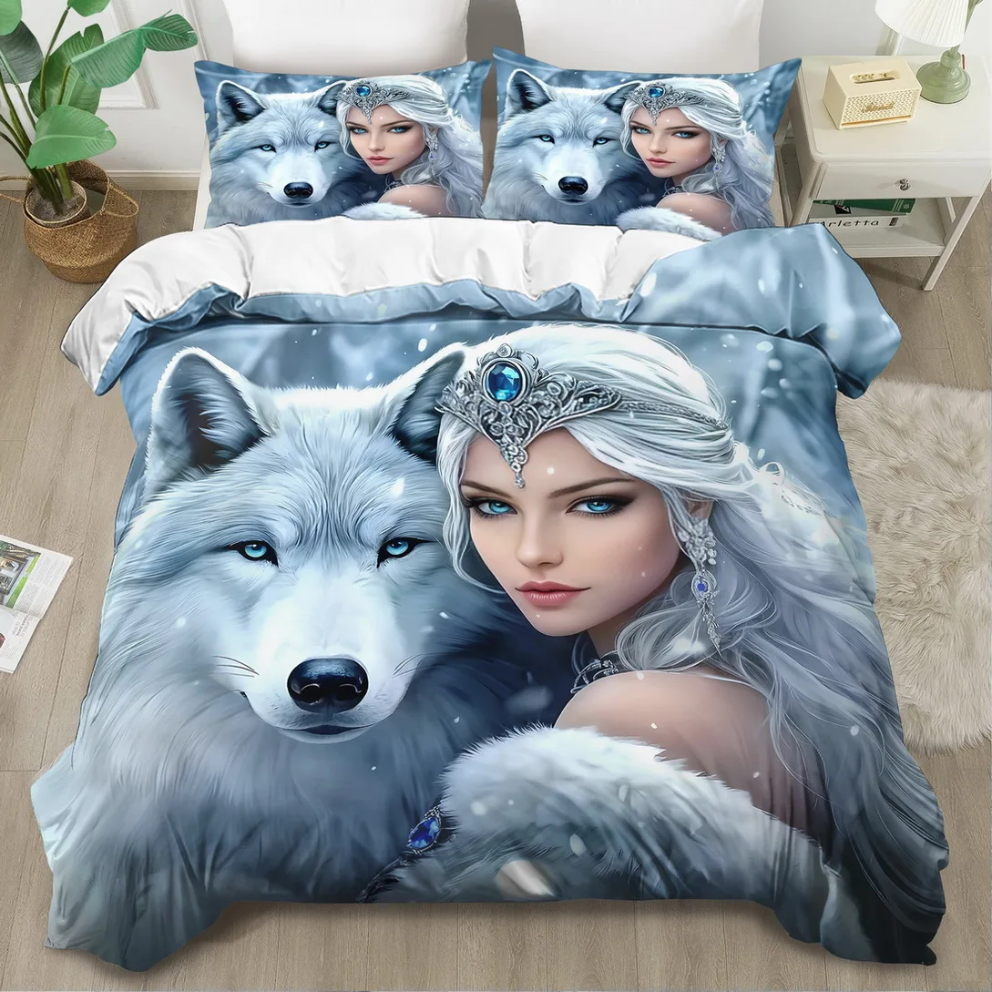 Princess And Wolf Print Duvet Cover Set, King Queen Style bedding, Machine Washable Bedroom Guest Room, Birthday Gift $32.70