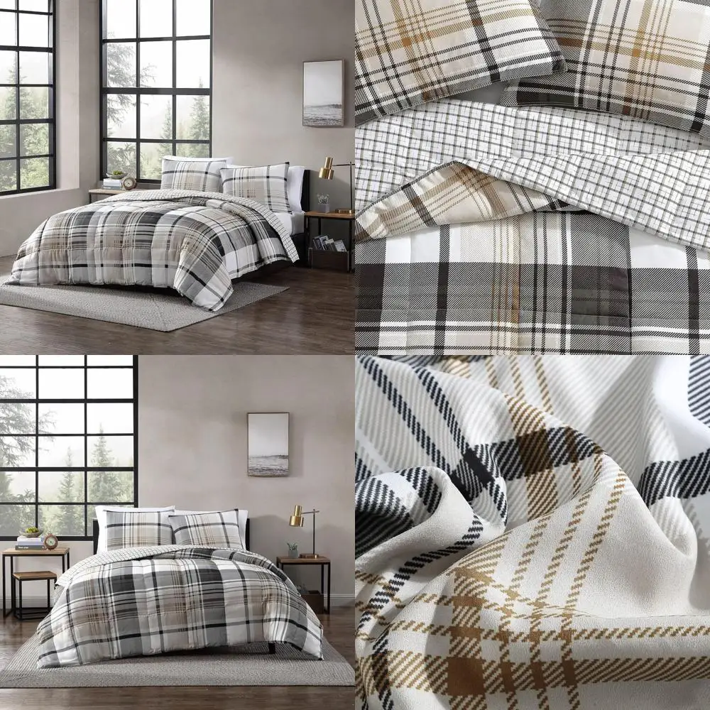 Cotton Grid Plaid Duvet Cover Set Queen Modern Reversible Checkered Bedding Set Hotel Quality 3 Pieces Duvet Comforter Cover Lux $77.02
