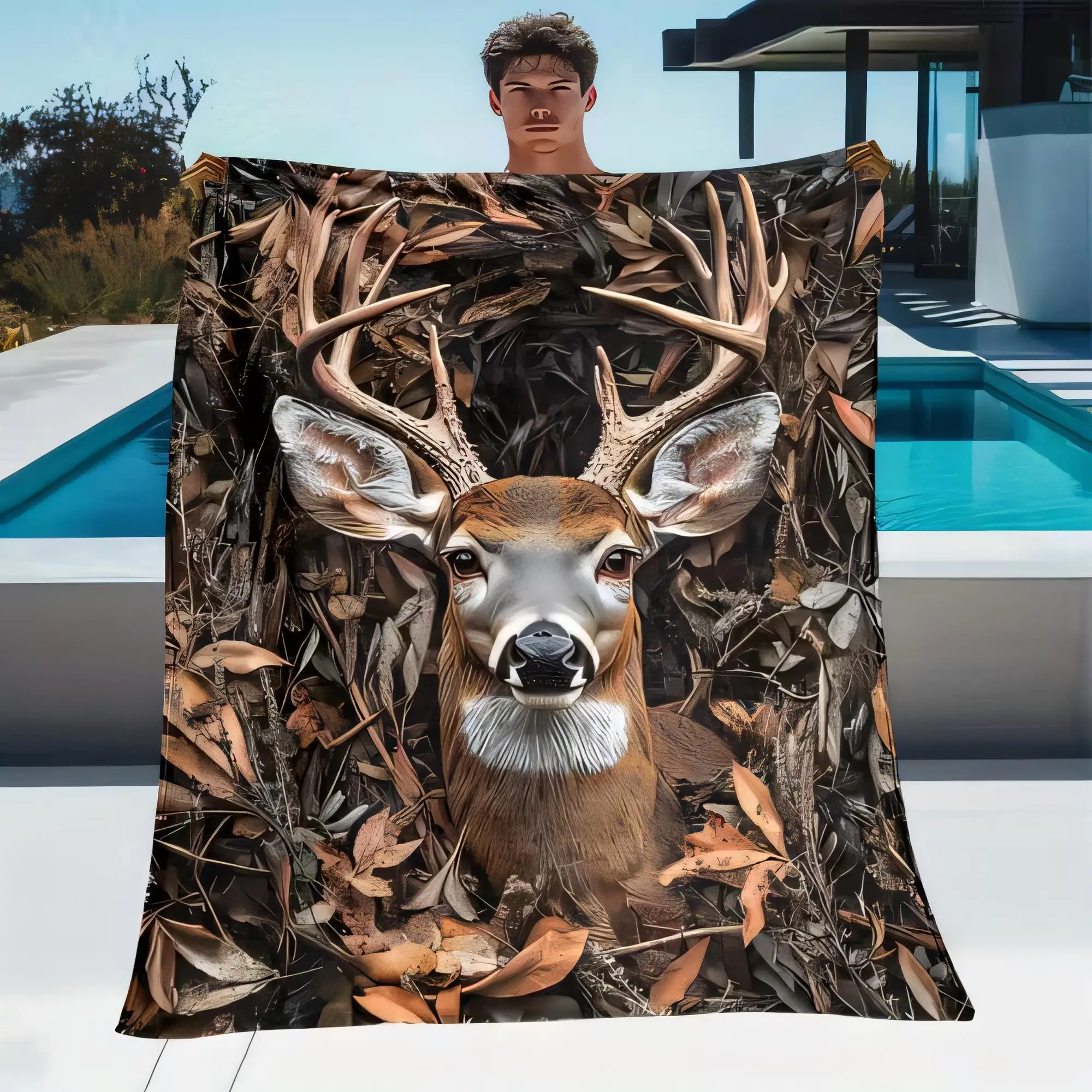 Realistic Deer Head Blanket Soft Plush Throw for Home Decor Cozy Bedding Gift, Featuring Nature-Inspired Design with Antlers and $11.07