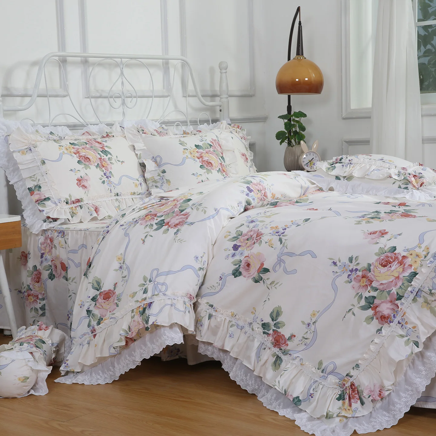 Ins Pink Princess Bedding Set with Ruffles Solid Color Soft Girls Boys Duvet Cover No Filler Pillowcase 3 or 4 pcs Bed Sheet $28.75