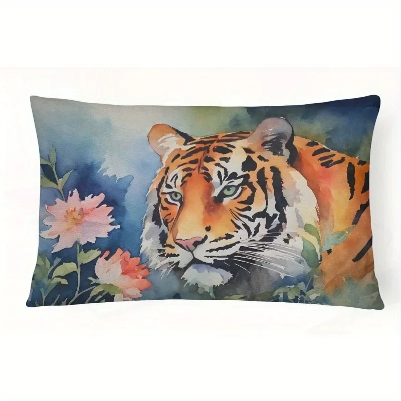 Single Watercolor Animal Print Pillowcase, Soft Material Decorative Bedding For Living Room Sofa And Bedroom $4.16