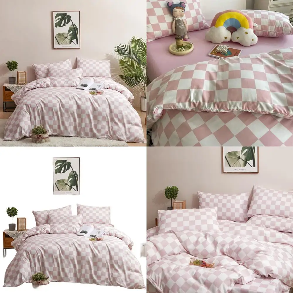Queen Size Pink & White Plaid Comforter Set - Modern Checkerboard Bedding for Women, Men, and Kids $130.15