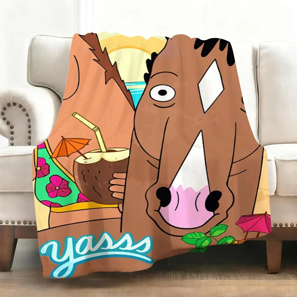 Funny B-Bojack Horseman Throw Soft Flannel Blanket Warm Knee Skin-Friendly Throw for Sofa Office Bed Traveling Winter Oversize $15.04