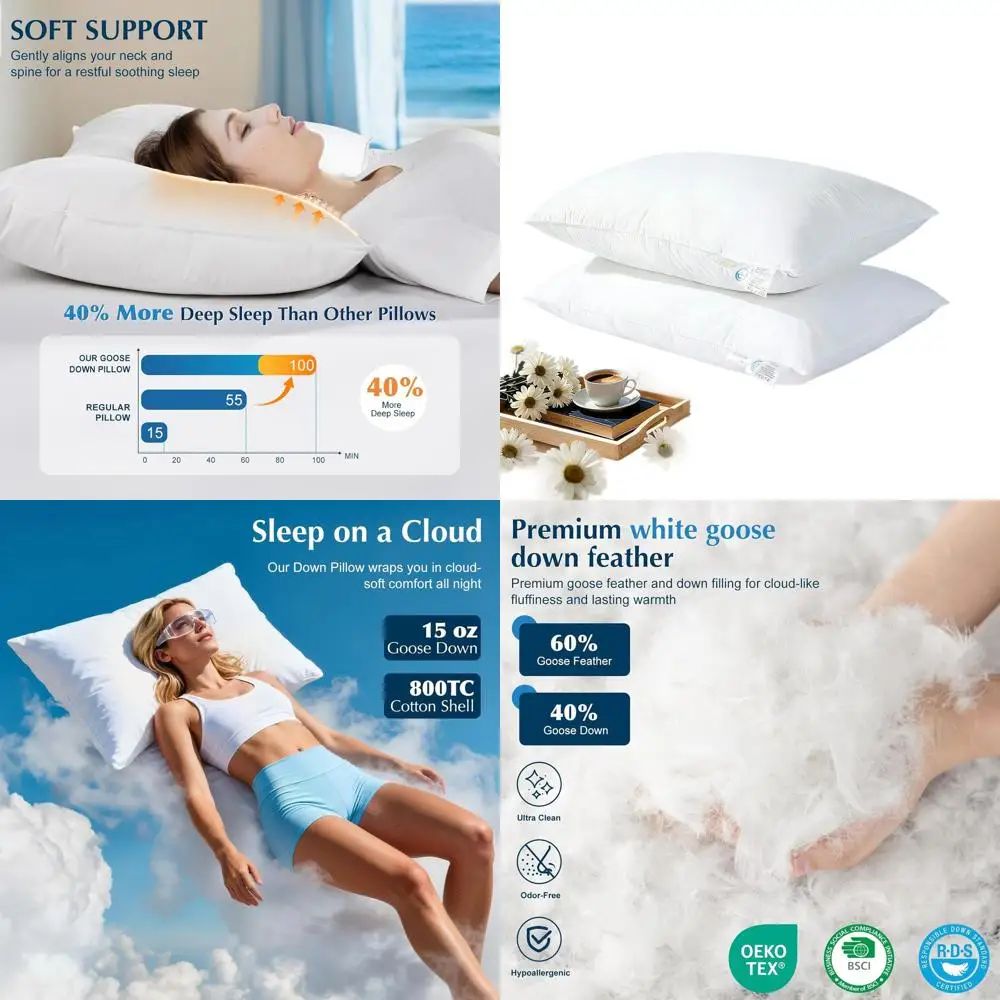 King Size 100% Cotton 3-Chamber Down Pillows, Ideal for Side and Back Sleepers (2-Pack, 20x36) $111.18