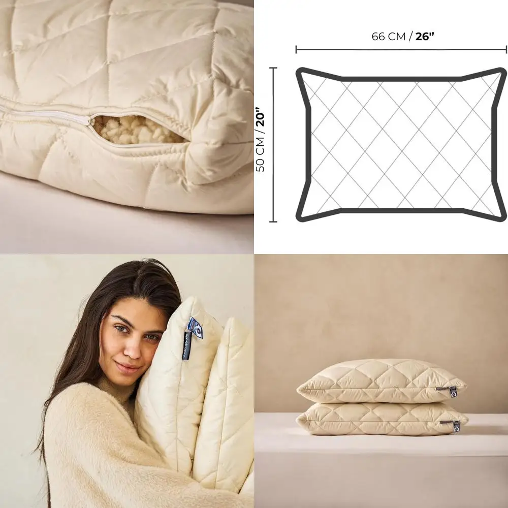 Washable Wool Pillow - Adjustable, Breathable, Hypoallergenic British Wool Bed Pillow - Champagne (20x26in) $77.83