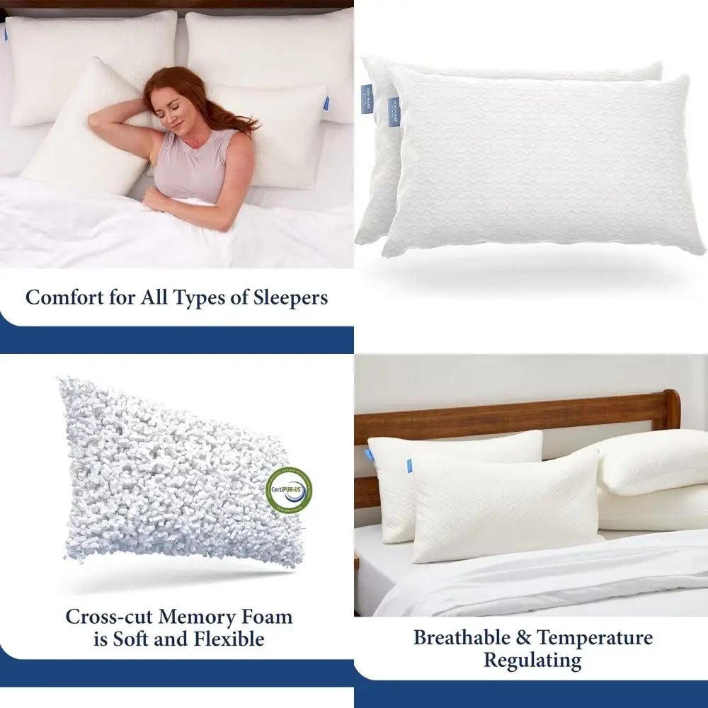 King Size Bamboo Memory Foam Pillows - Shredded, Adjustable, Removable, Cool Breathable Zippered Cover $85.73