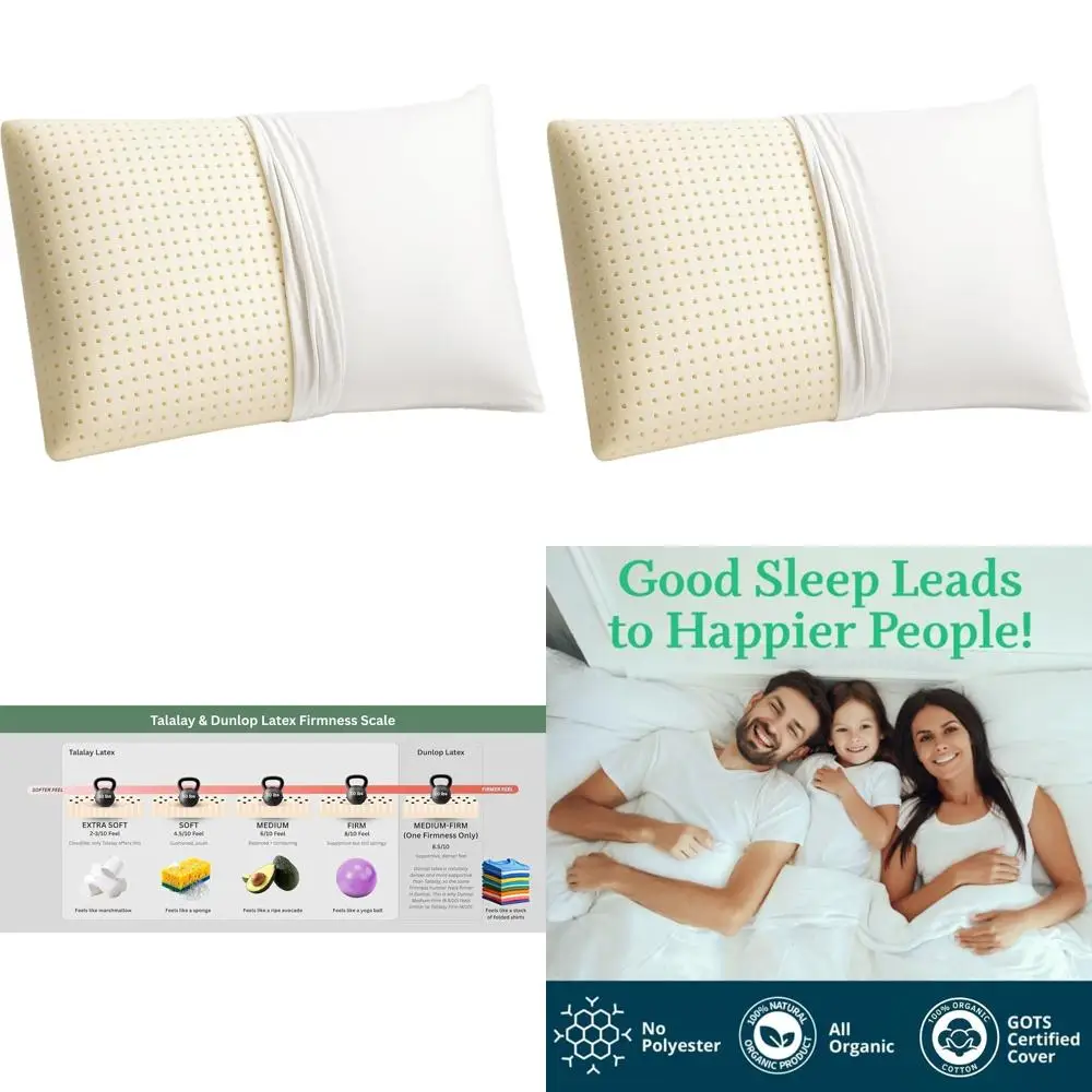 King Size Organic Cotton Talalay Latex Pillow for Pain Relief and Support for Stomach and Side Sleepers $96.06