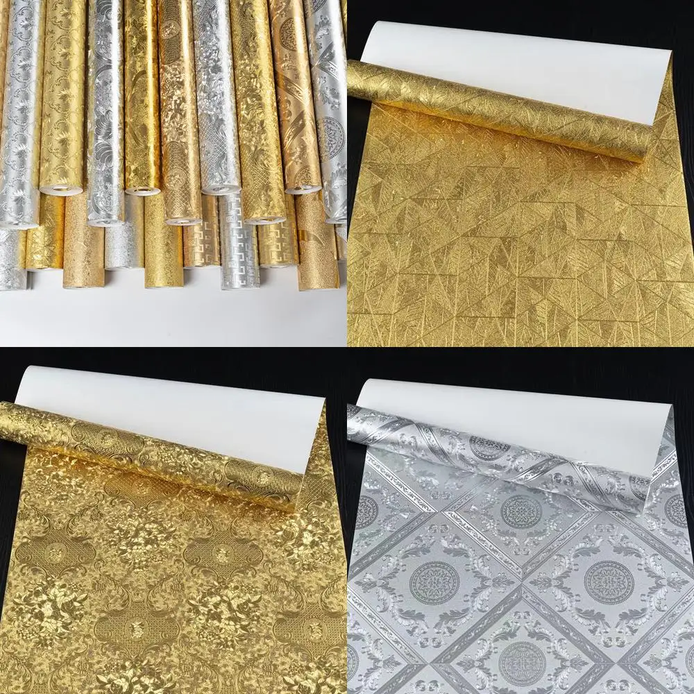 Golden Yellow Wallpaper Ktv Flash Reflective Living Room Bedroom Home Decoration European Style 3D Luxury High-End Wall Stickers $46.45