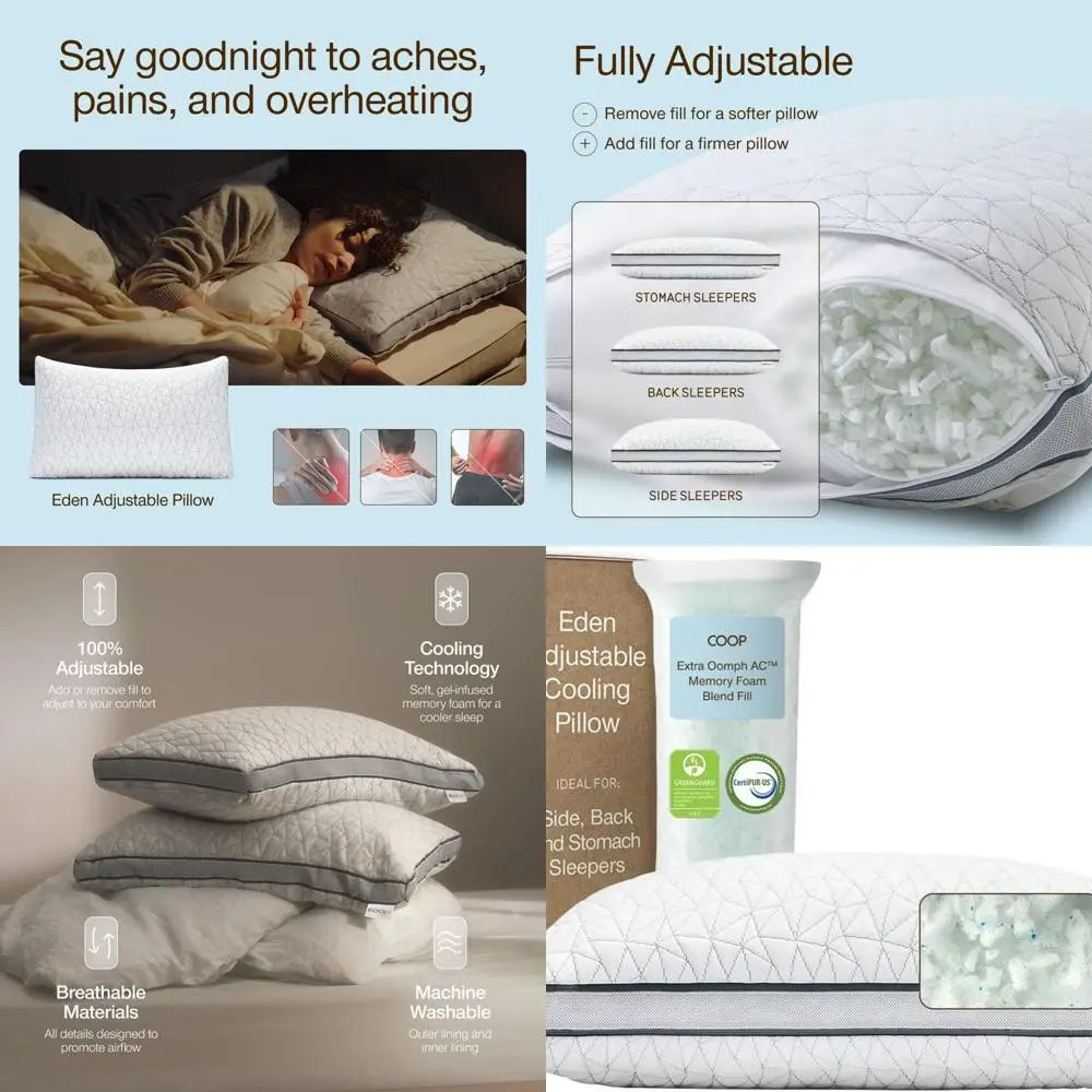 King Size Cool Adjustable Pillow - Memory Foam with Gel, Lulltra Fabric, Suitable for All Sleep Positions, Eco-Friendly CertiPUR $154.32
