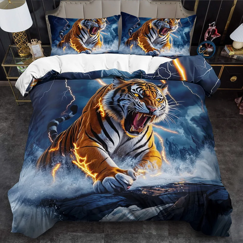 2/3pcs Tiger-Themed Duvet Cover Set, Soft, Breathable, and Comfortable, Cartoon Animal Print Bedding Set with Zipper Closure $35.26