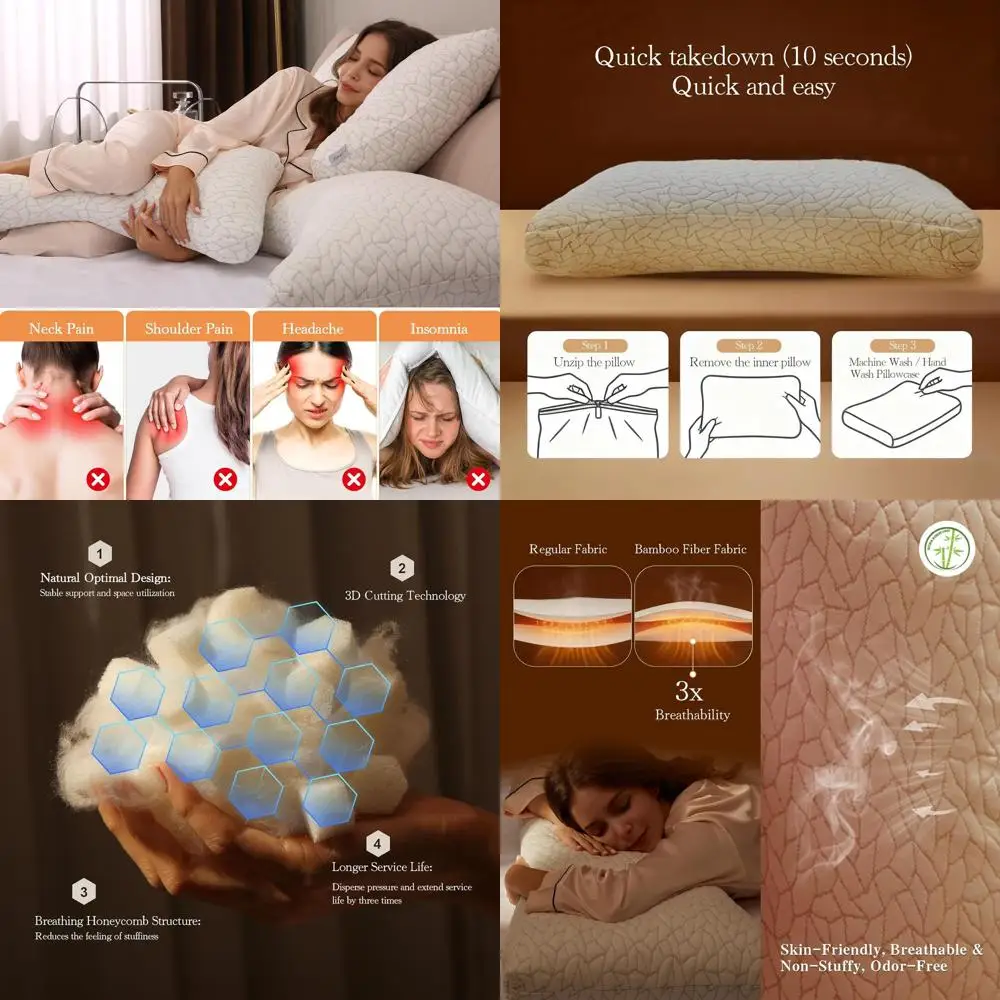 King Size Breathable Adjustable Pillow for Side, Back, and Stomach Sleepers with Washable Cover, 18x34IN $51.54