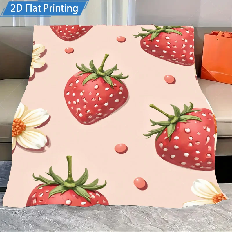 1pc Flannel Blanket Strawberry Print Blanket Soft Cozy Throw Bedding Decor for Living Room Couch Cover $16.32