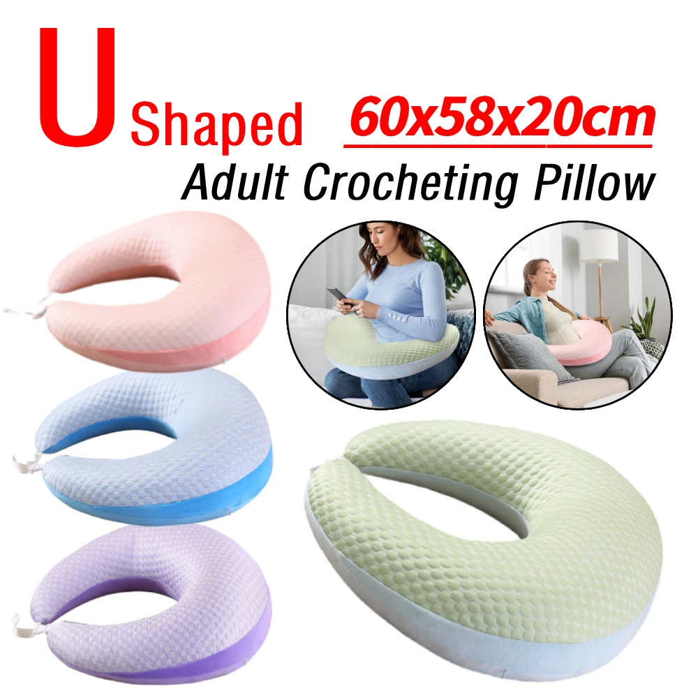 U-shaped Adult Crocheting Pillow Ergonomic Arm Support Pillow Soft Teens Arm Rest Pillow Skin-friendly for Adults Watching TV $47.88