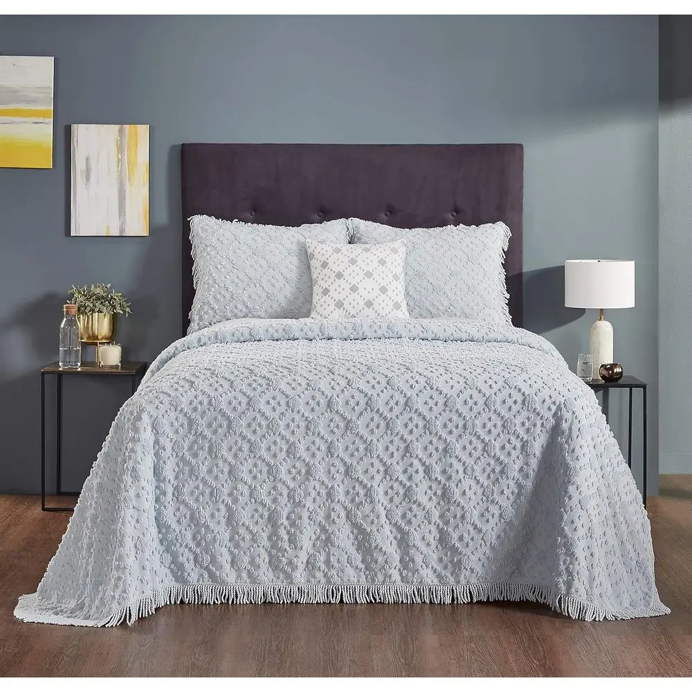 4 Pieces Set Chenille Bedspread King Size 100% Cotton Chenille Bedding Lightweight Bedding Geometric & Diamond Bedroom Decor Blu $131.16