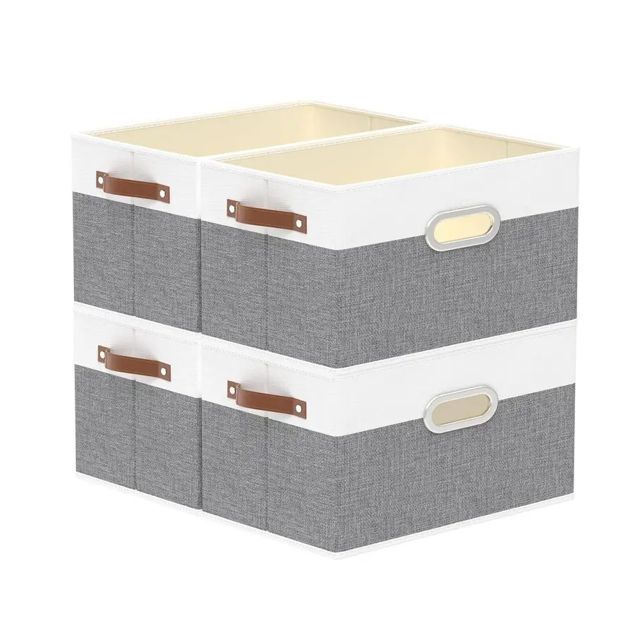 Fabric Storage Baskets, Foldable Closet Organizer for Shelves, Large Boxes with 3 Handles, Canvas Bins for Clothes, White Grey, $42.99