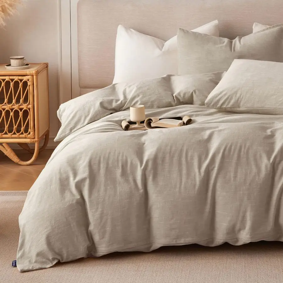 Linen Duvet Cover King Size Soft Breathable Cotton Linen Blend, 3Pieces Bedding Set with 2 Pillowcases, Stonewashed Texture, Kha $118.53