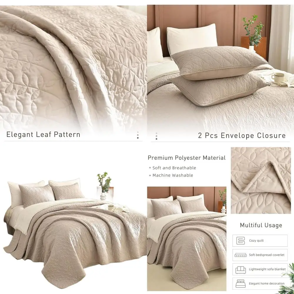 Linen Quilt Set with Leaf Pattern, Soft Lightweight King Size Bedding Coverlet, 3-Piece Boho Farmhouse Style $134.29