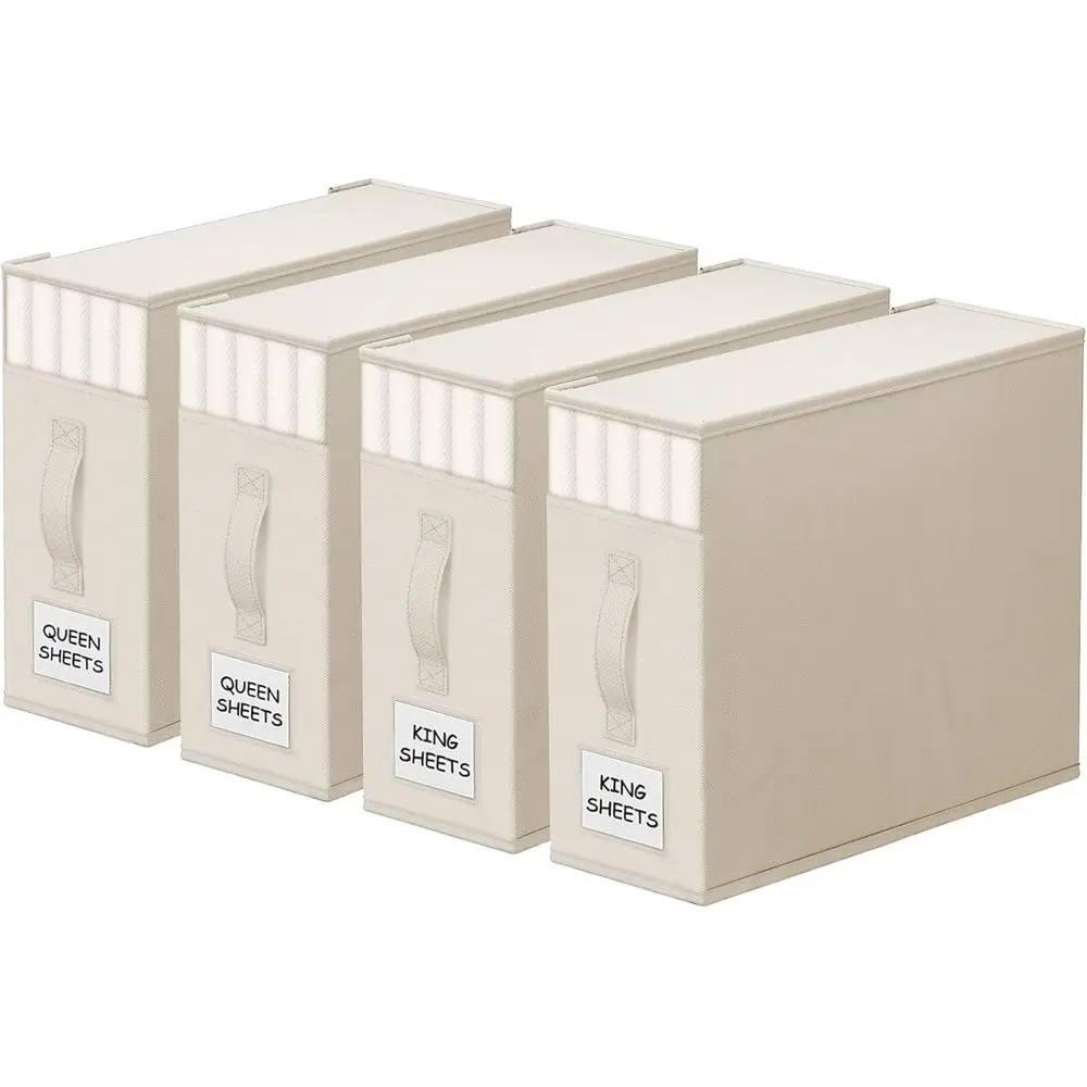 4-Pack Durable Bed Sheet Organizers with Window and Labels for Effortless Storage of Bedding and Blankets (Beige) $53.72
