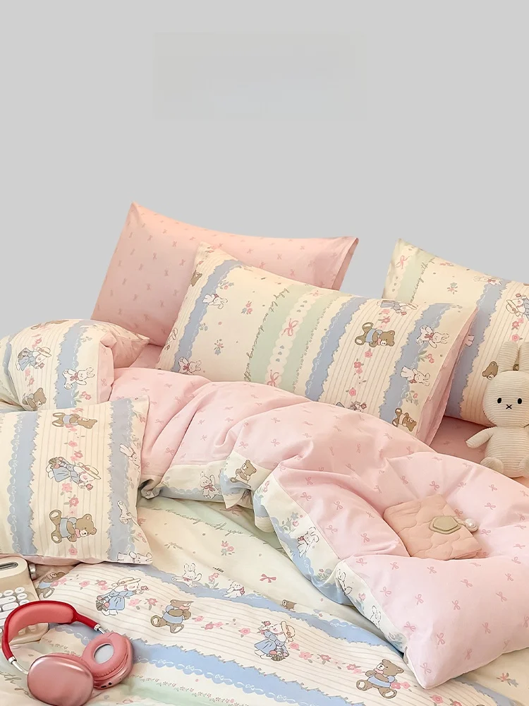 Cute Garden Pure Cotton Bedding Four-Piece Set Student Dormi Tee-Piece Set Warmth Function Active Printing Cartoon Pattern $143.84