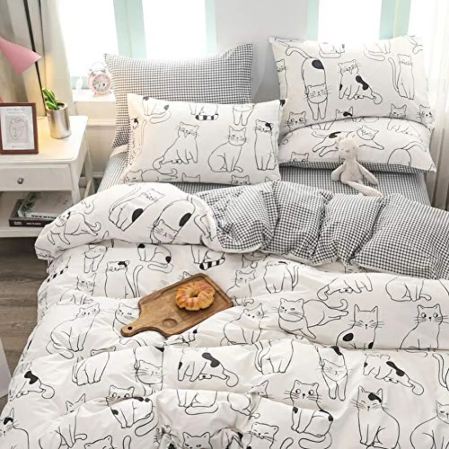 Cats Duvet Cover Set Twin 100% Cotton Bedding for Boys Girls Teens Single Bed Cartoon Cats Pattern Print on White 1 Animal Comf $44.55