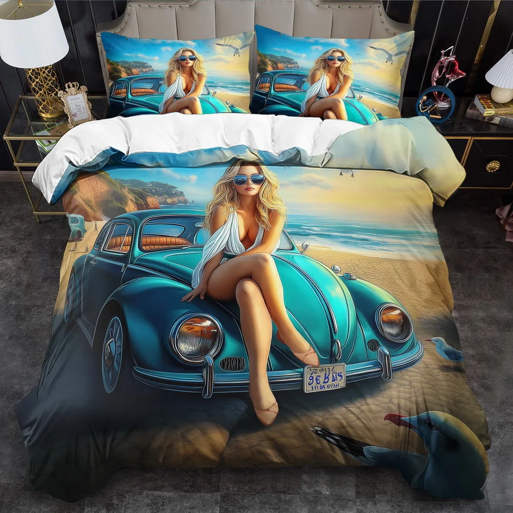 1 Set Tropical Beach Beauty Cartoon Themed Duvet Cover Set - 2/3pcs, Soft Breathable Polyester Bedding with Zipper Closure $35.26