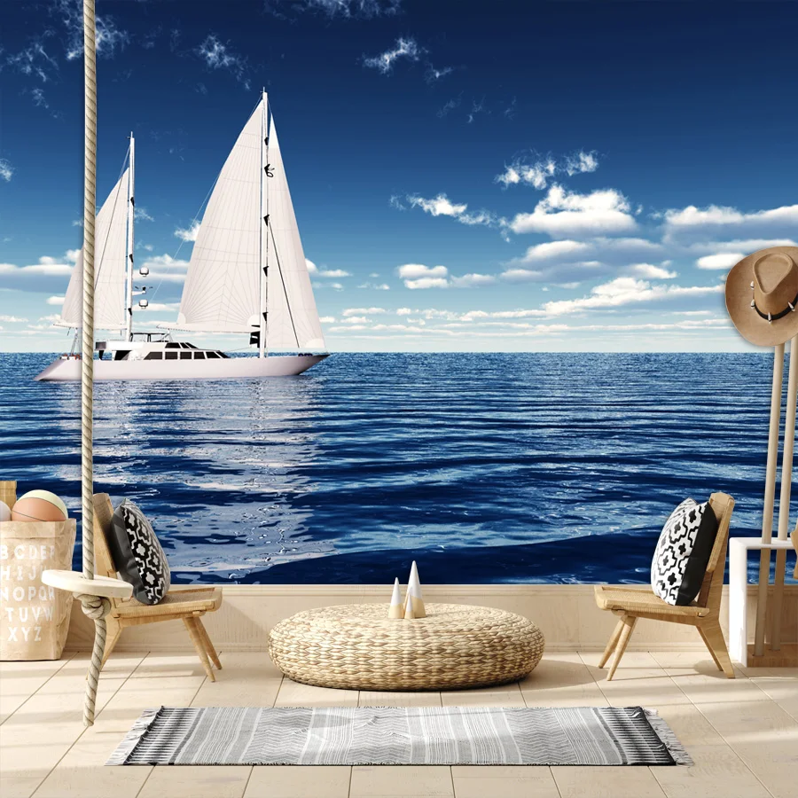 Custom Peel and Stick Wallpaper for Living Room Contact Wall Papers Home Decor Panel Sailboat Sea Sky Renovation Mural Covering $9.84