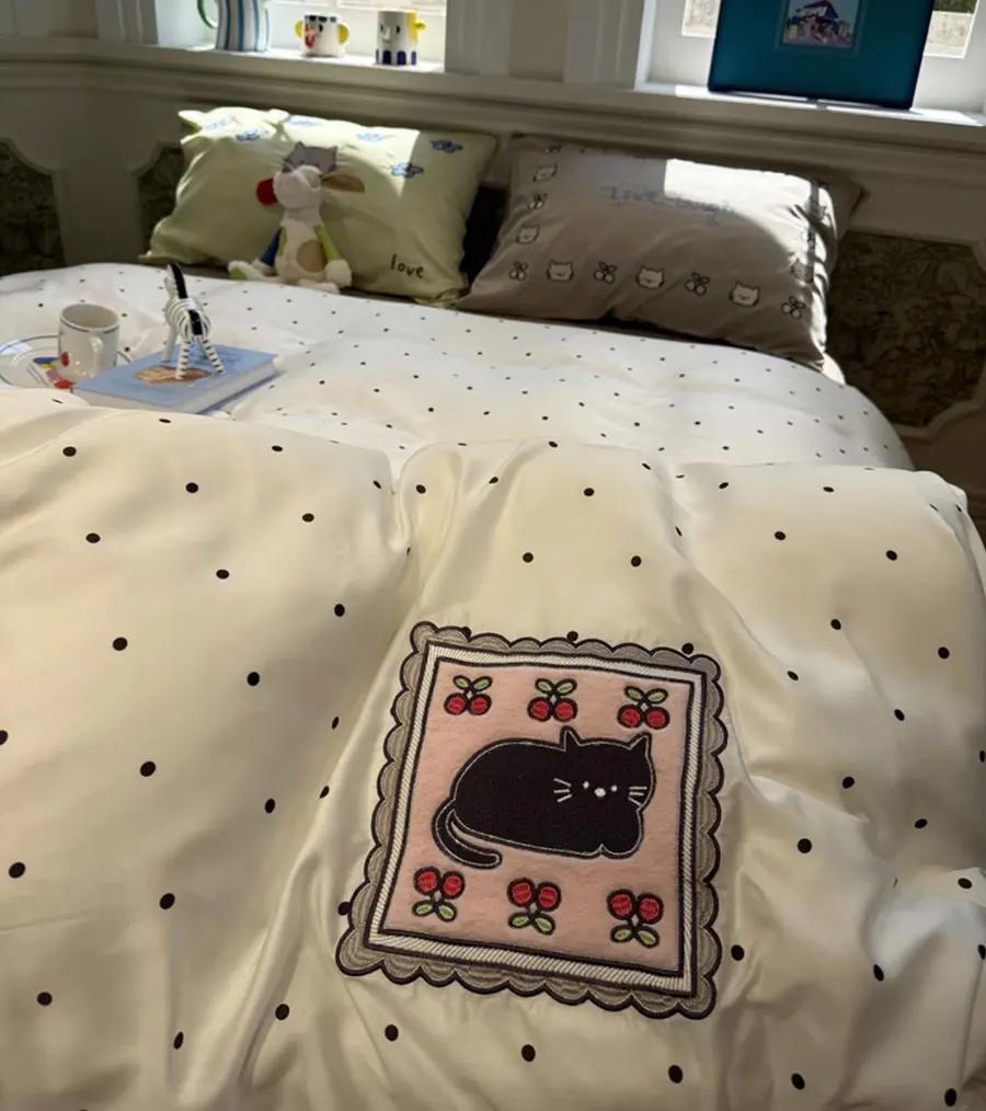 Cute cartoon cat polka dot bedding set kid child teenage,full queen king 60s kawaii home textile sheet pillow case quilt cover $138.00