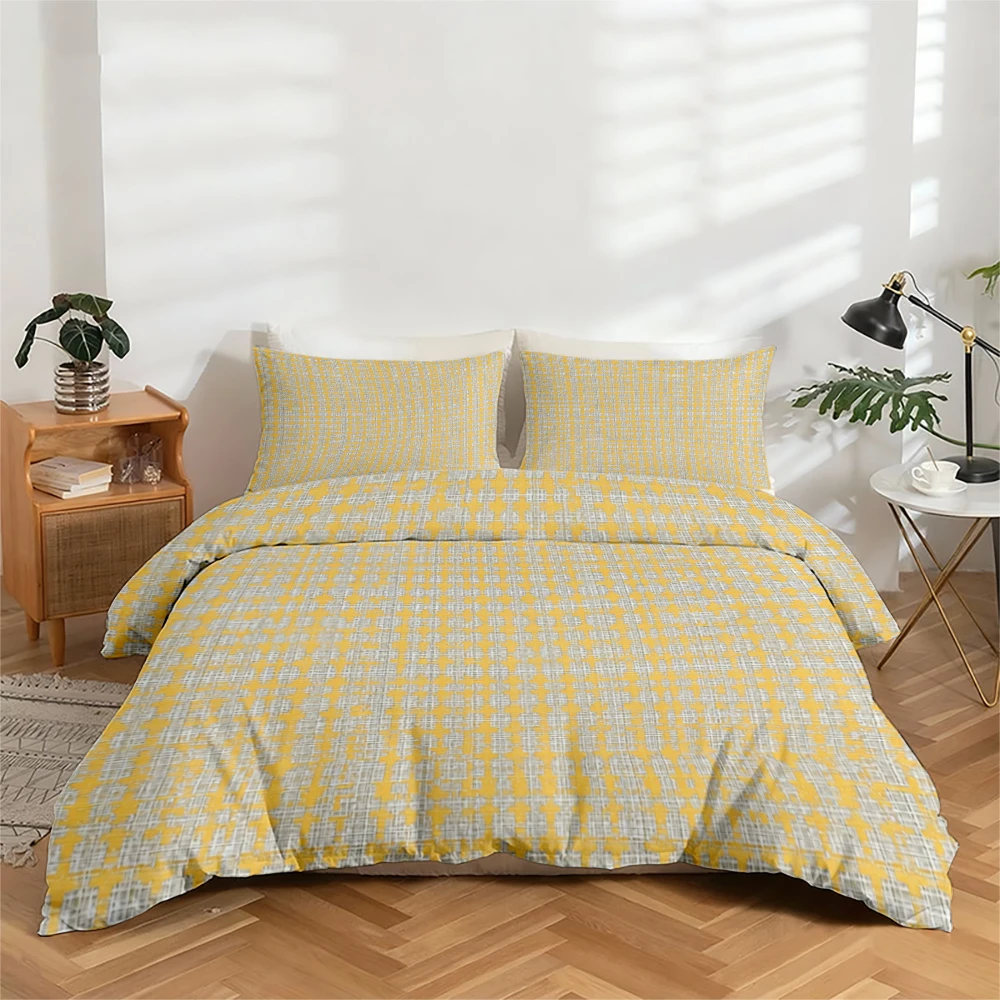 High-Definition Digital Printed Bedding Set, Yellow and White Checkered Pattern Duvet Cover Set, Large Floral Print Duvet Cover Set, Includes 1 Duvet Cover + 2 Pillowcases, Suitable for Bedroom, Guest Room, Home Decoration, Polyester Fiber Duvet Cover + Pillowcase Three-Piece Set, Ultra-Soft Bedding, Thick Fabric, Suitable for All Seasons, Machine Washable, 3 Pieces $21.79