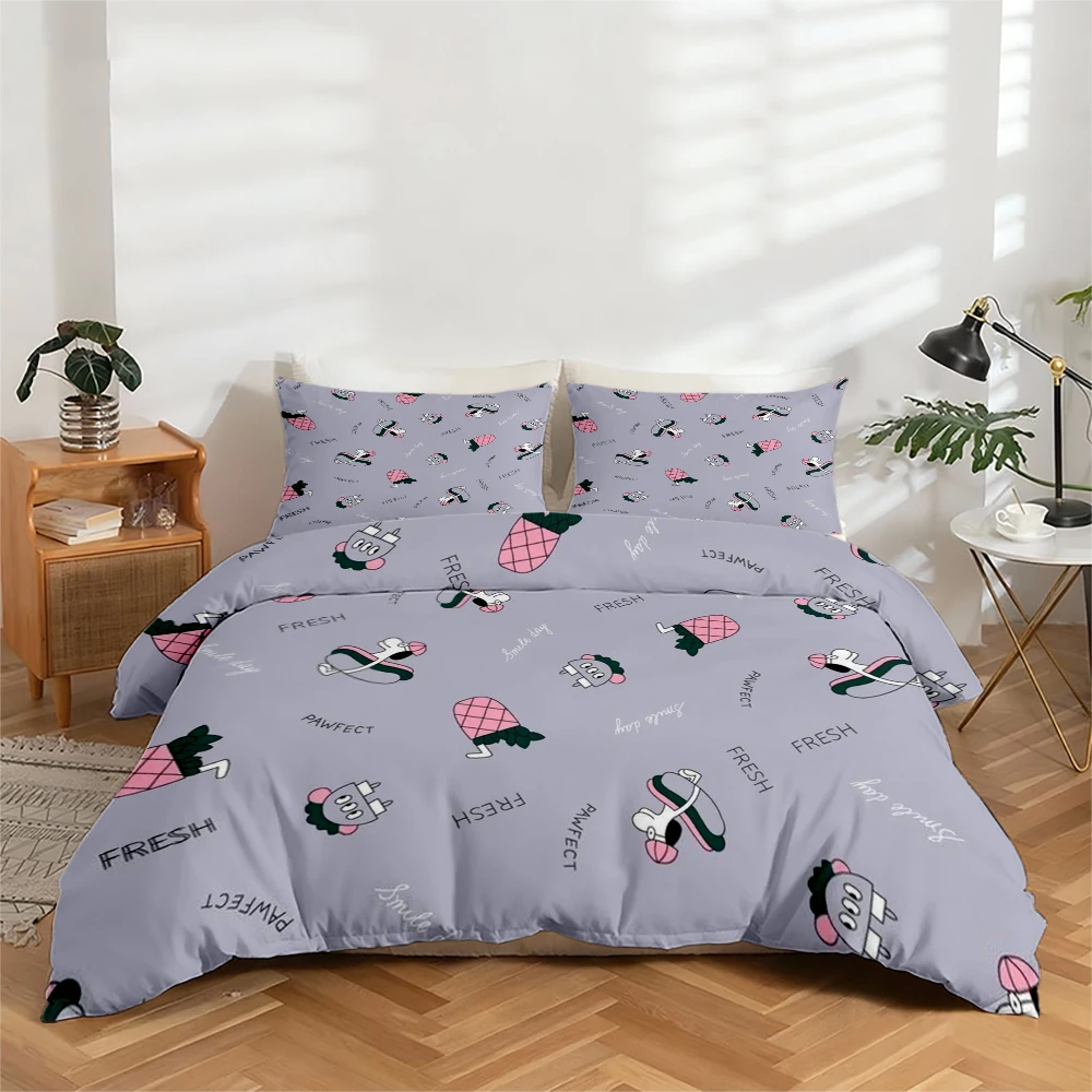 High-Definition Digital Printed Bedding Set, Cute Cartoon Dog and Pineapple Pattern Duvet Cover Set, Large Floral Print Duvet Cover Set, Includes 1 Duvet Cover + 2 Pillowcases, Suitable for Bedroom, Guest Room, Home Decoration, Polyester Fiber Duvet Cover + Pillowcase Three-Piece Set, Ultra-Soft Bedding, Thick Fabric, Suitable for All Seasons, Machine Washable, 3 Pieces $19.86