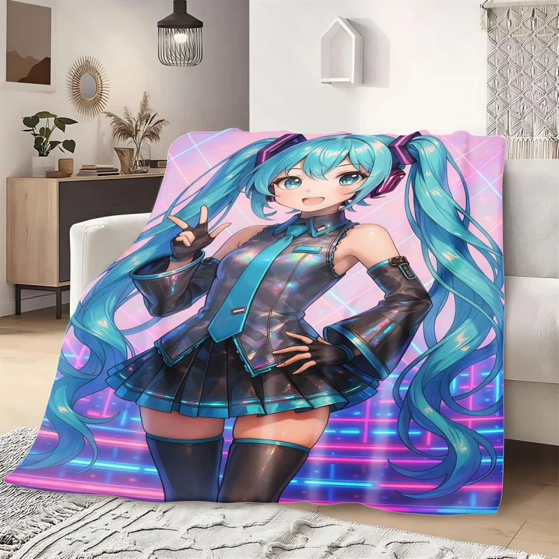 Singer Anime Blanket for Miku Fans Soft Warm Nap Blanket for Sofa Office Bed Perfect Gift Idea Comfortable and Cozy Home Bedding $11.82
