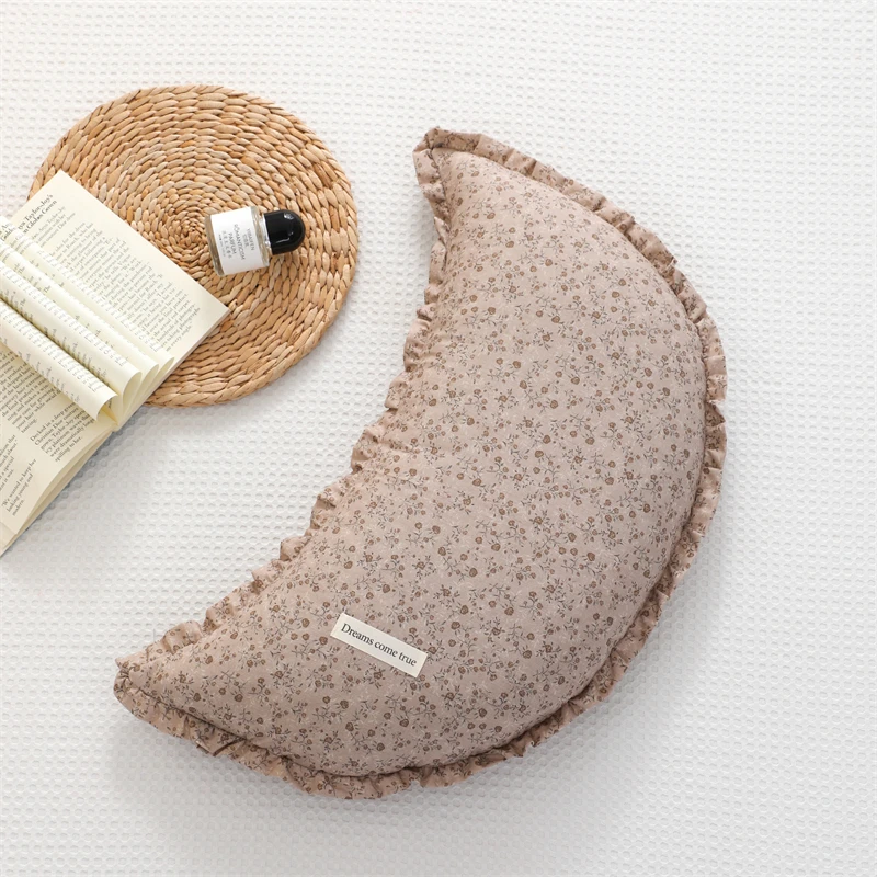 2026 New Pillow Cotton Small Floral Moon Shape Buckwheat Pillow for Kids Girls Gift Home Decor Soft Waist Neck Pillow 1 Piece $34.45