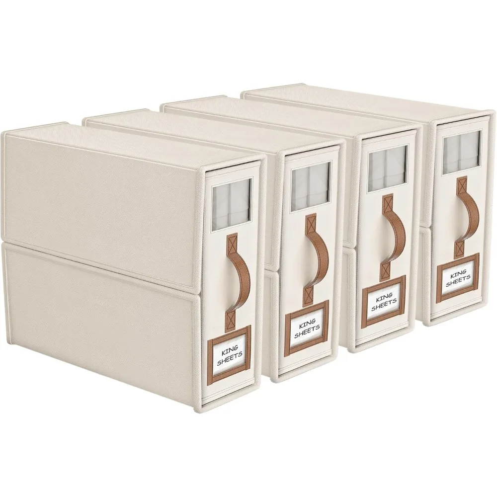 Foldable Linen Closet Organizer Set with Window for King Queen Bedding and Pillow Storage Beige $76.04