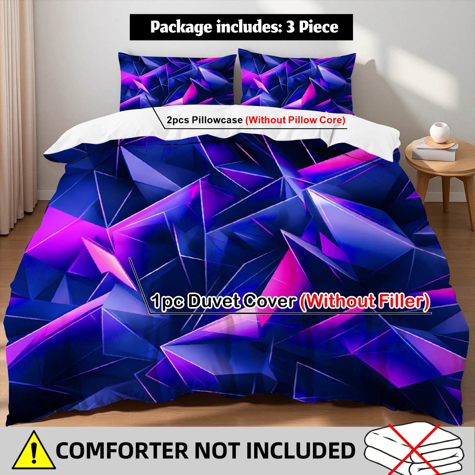 Modern Duvet Cover Set 3D Geometric Crystal 3Pcs Purple Luxury Print Home Decor Bedding 2 Pillowcases No Comforter Twin Queen $19.50