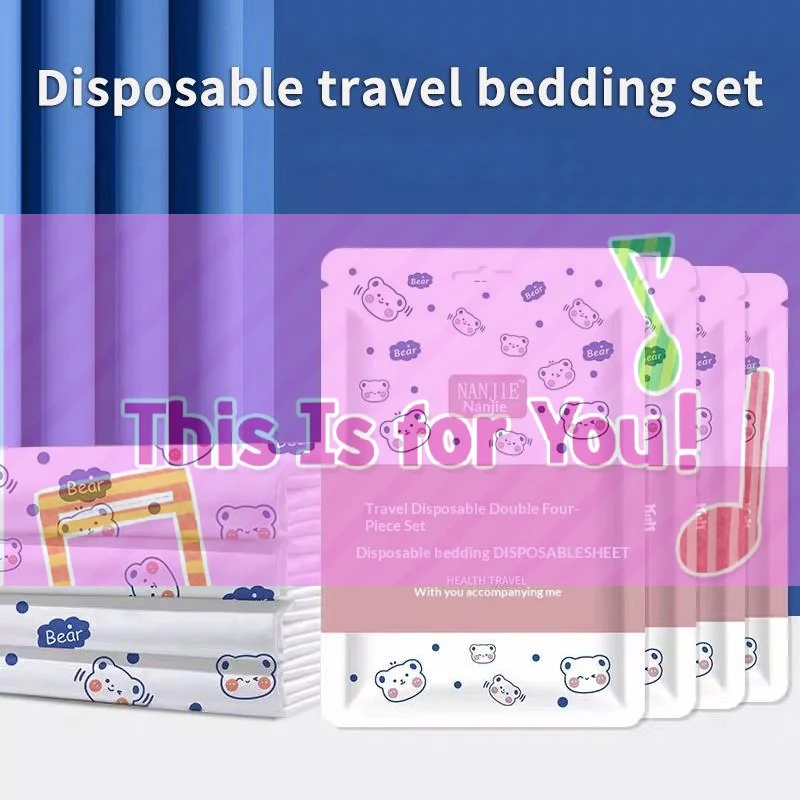 Non-Woven Bedding Set Disposable Duvet Cover 3/4pcs Bed Sheet Travel Anti-Dirty Waterproof Hotel Portable Travel Bedding Set $8.22