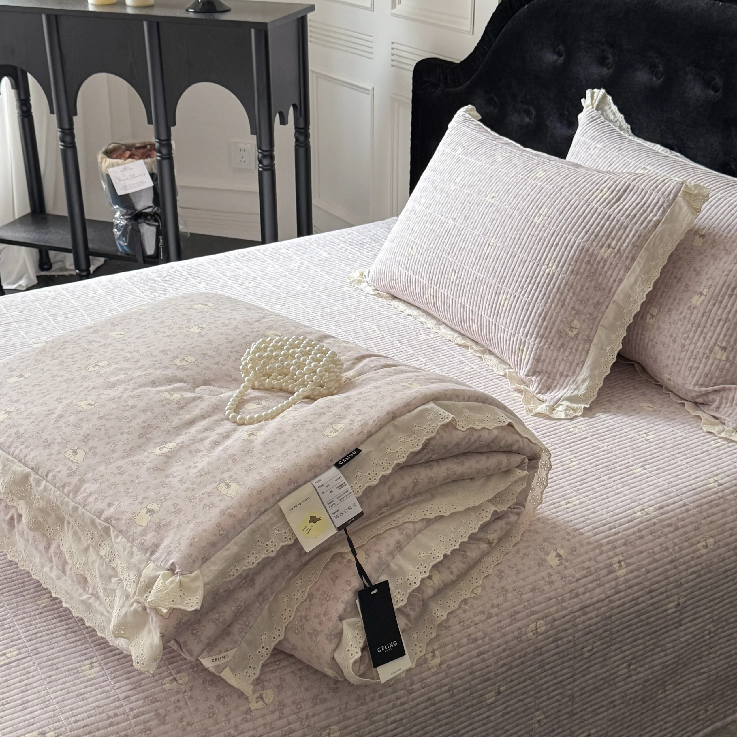 Floral Cotton Bed Cover Tee-Piece Set Pure Cotton Lace Four-Piece Set Girl's Heart French Sle Cartoon Anime Bedding Covers $36.69