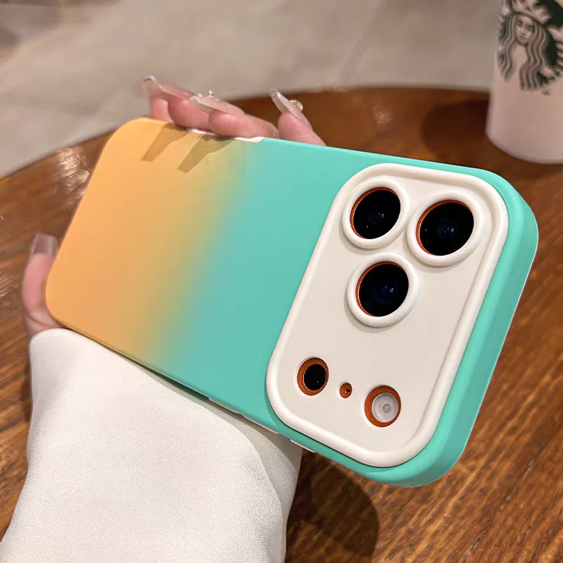 Gradient Color Matte Camera Protection Case For iPhone 17 16 15 14 13 Pro Max 2 IN 1 Large Window Anti-fall Bumper Phone Cover $1.99