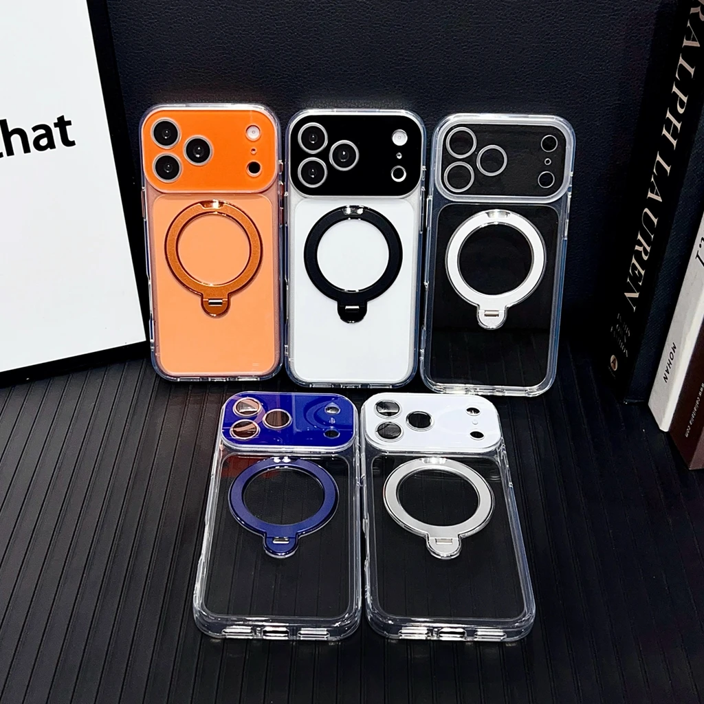 Simple Transparent 360-degree Rotation Holder Window With Camera Glass Film Phone Cover Case for iPhone 17 16 15 14 13 Pro Max $14.76