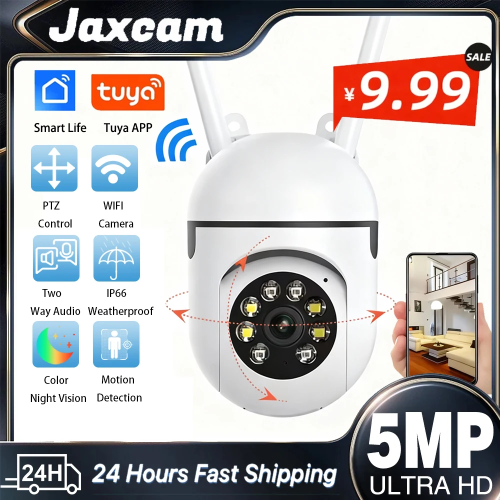 Jaxcam TUYA 5MP Smart Life CCTV Wifi Camera Wireless Security Surveillance Cameras Outdoor AI Smart Tracking Two Way Audio $29.05