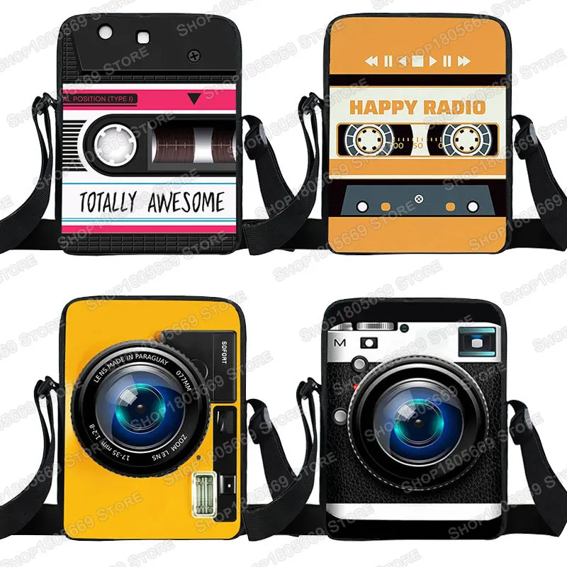 Vintage Cassette Audio Mixtape Camera Print Crossbody Bags 80s 90s Girls Messenger Bag Ladies Handbag Canvas Shoulder Bag Gift $6.97