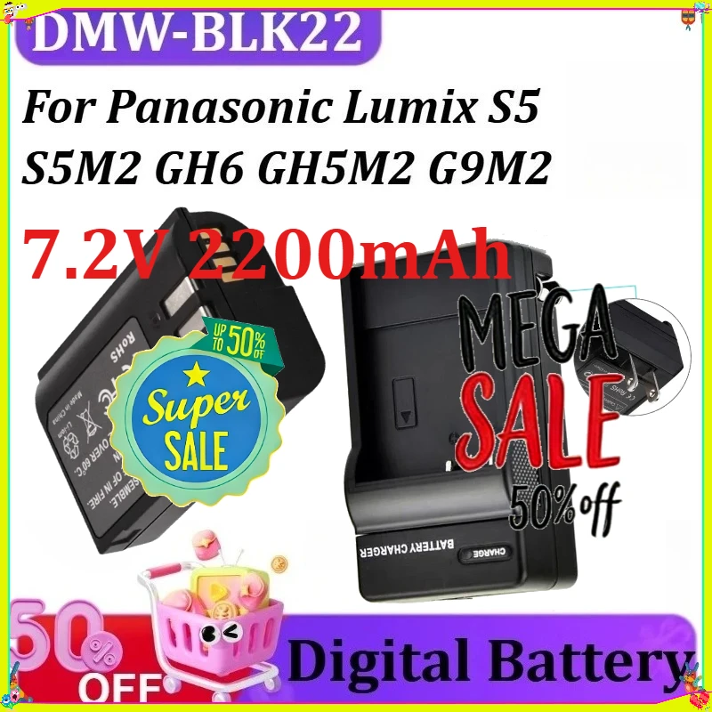 DMW-BLK22 7.2V 2200mAh for Panasonic Lumix S5 S5M2 GH6 GH5M2 G9M2 Camera Digital Batteries Replacement Battery $26.00