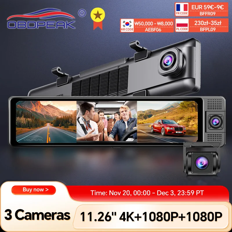 H330 Dash Cam 3 Channel Rearview Mirror Front Inside Rear 4K+1080P+1080P WiFi GPS Dual Lens Car Dvr Camera Infrared Night Vision $53.66
