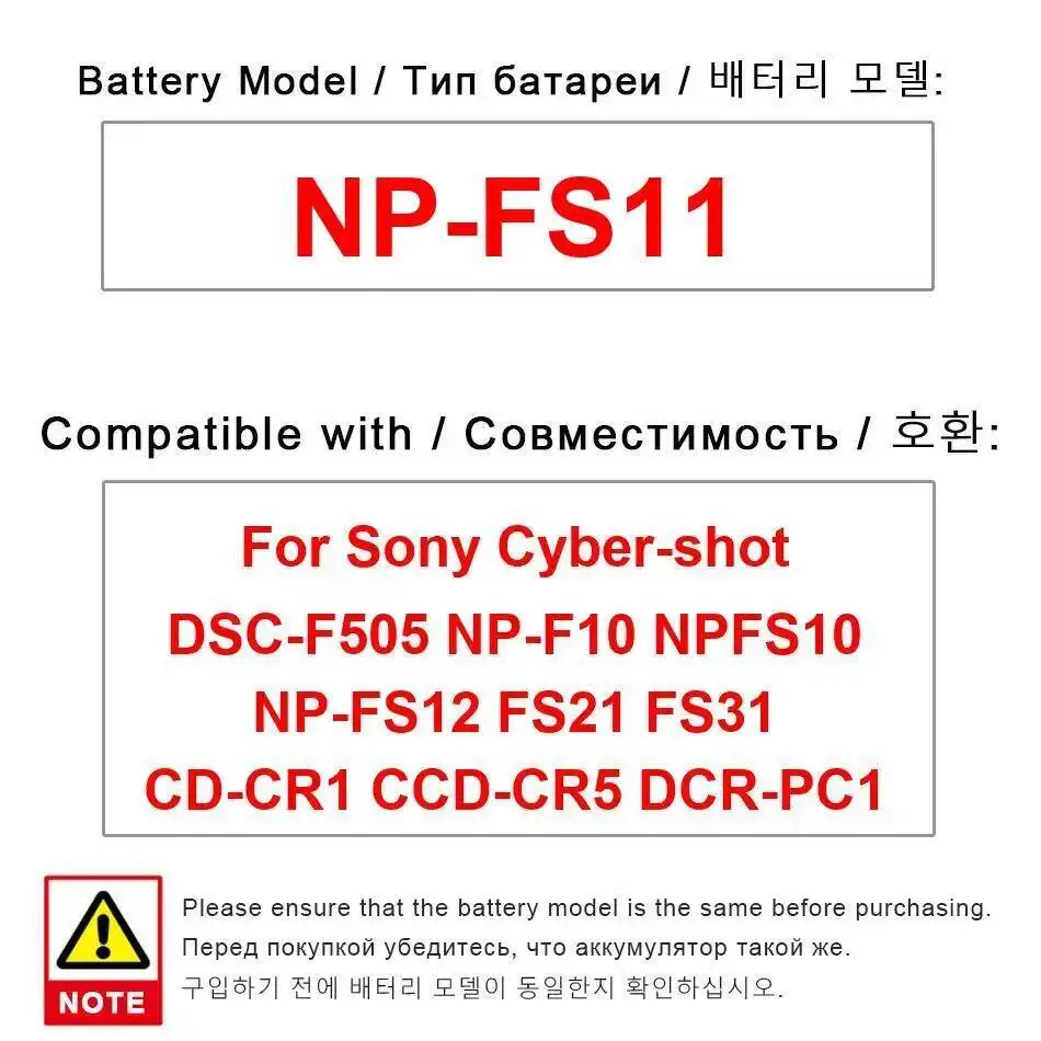 Camera Battery NP-FS11 1900Mah For Sony Cyber-Shot Dsc-F505 NP-F10 NPFS10 NP-FS12 FS21 FS31 CD-CR1 Ccd-CR5 Dcr-PC1 $14.96