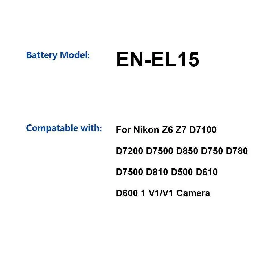 Camera Battery EN-EL15 2550Mah For Nikon Z6 Z7 D7100 D7200 D7500 D850 D750 D780 D810 D500 D610 D600 1 V1 $16.25